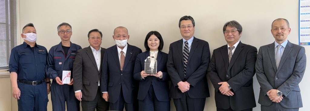 贈呈のために進社長を含め3名が弊社にお越しくださいました。